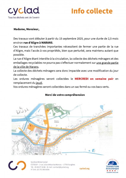 La collecte des ordures ménagères s’effectuera désormais le mercredi au lieu du jeudi.