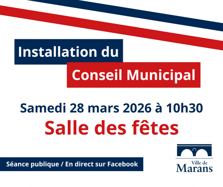 Rendez-vous samedi 28 mars à 10h30 à la salle des Fêtes de Marans ou en direct sur Facebook pour l'installation du nouveau Conseil Municipal, mandat 2026-2032.